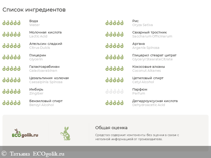 🧡Маска на 98% состоит из компонентов натурального происхождения. Вот, что о составе говорит нам Экоголик: