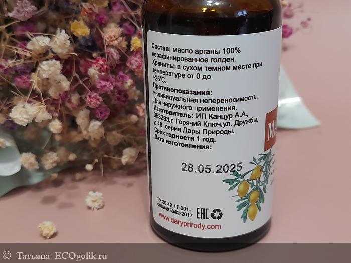Масло арганы от "Дары природы" - это качественное и натуральное средство широкого спектра действия. Я оцениваю его на пять баллов и рекомендую к использованию!