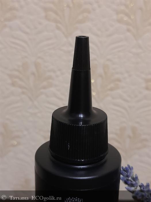 Флакончик объемом 100 мл изготовлен из плотного черного пластика.
