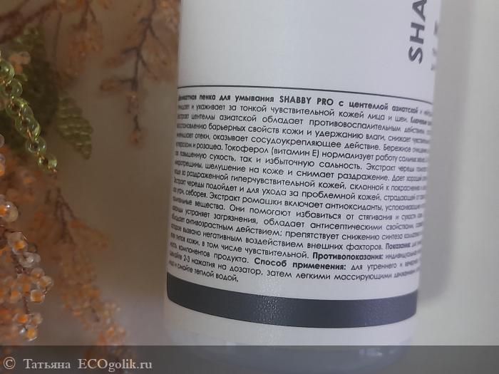Татьяна: Мусс пенка для умывания с центеллой азиатской для чувствительной кожи SHABBY PRO - это нежнейшее средство с чудесным составом, воздушной текстурой, идеальным составом и отличным результатом!