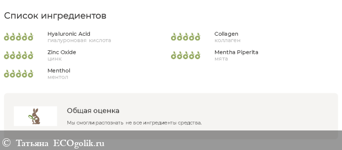гиалуроновая кислота; коллаген; витамины; цинк; медь; магний; мята; ментол