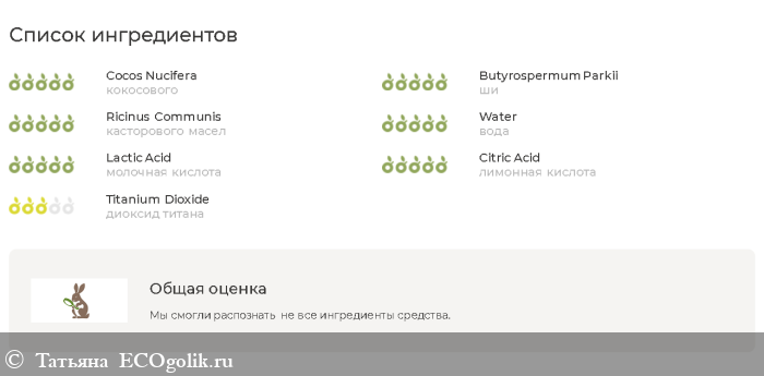 Есть только один компонент, который получил три звезды - диоксид титана.