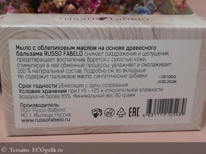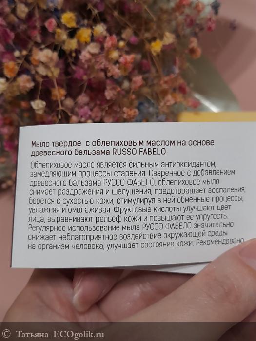 Татьяна: Мыло с облепиховым маслом на основе древесного бальзама Russo Fabelo - для тщательного очищения кожи тела и лица.