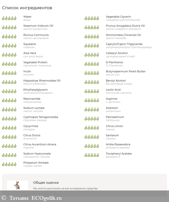 Сайт Экоголик тоже оценил все составляющие средства на пять баллов.