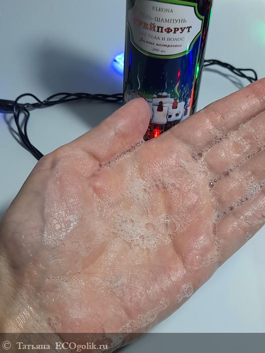 Татьяна: Новогодний шампунь-гель для душа "Грейпфрут" Kleona - Аромат длительное время держится на поверхности кожи, пробуждает, дарит отличное настроение и заряд бодрости на целый день!