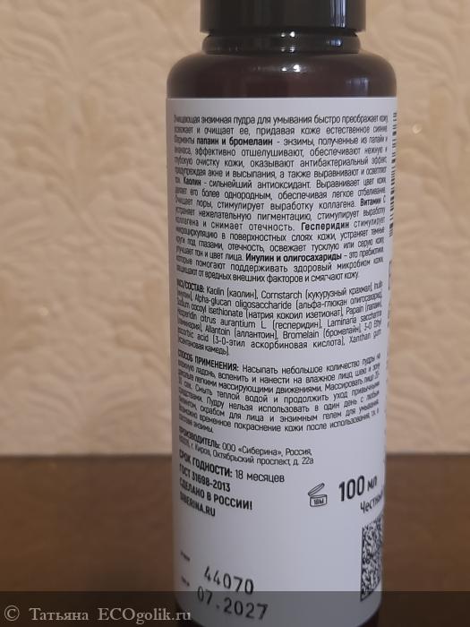 Татьяна: Очищающая энзимная пудра для умывания SIBERINA - для чистой и гладкой кожи!