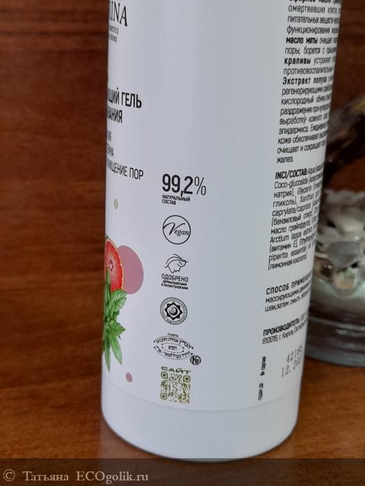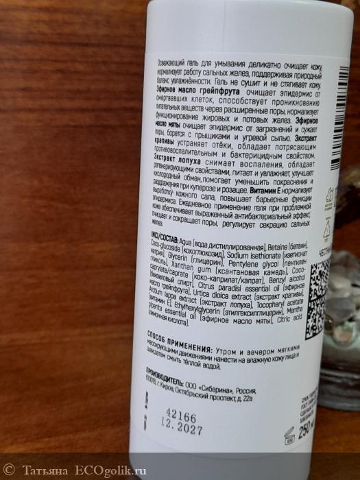 Татьяна: Освежающий гель для умывания «Нормализация кожного себума и глубокое очищение пор» SIBERINA - приятный цитрусовый аромат, в меру пенится, обладает отличными свойствами