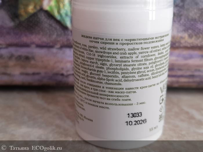 Татьяна: Патчи для век жидкие с меристемными экстрактами почек сирени и проростков подснежника Miraflores - просто шикарный состав! Производитель умеет удивить и восхитить!