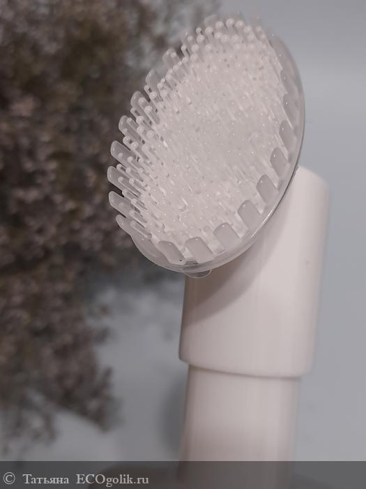 Средство на отлично очищает кожу, при этом мягкая и тактильно приятная щеточка не травмирует ее. Пенка не сушит и не стягивает, не оставляет какого-либо дискомфорта. Кожа мягкая, гладкая, без шелушения и сухости. Щеточка хорошо очищает поры. А еще ощущается эластичность кожи.