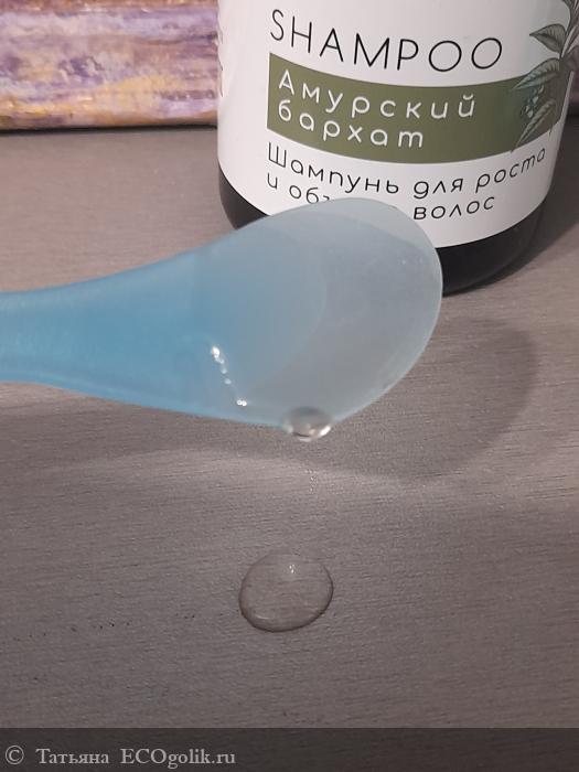 Шампунь достаточно жидкий, быстро растекается. Он бесцветный, прозрачный.