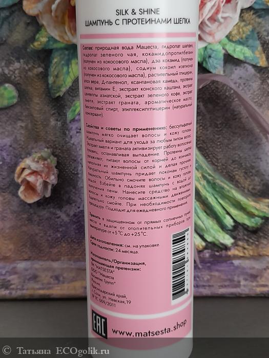 Татьяна: Шампунь SILK & SHINE SHAMPOO с протеинами шелка MATSESTA - все понравилось - аромат, текстура, густая пена и отличное очищение!