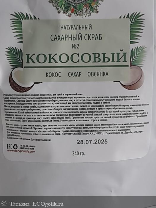 Татьяна: Скраб № 2 "Кокосовый" Дары Природы - шикарный аромат и состав!