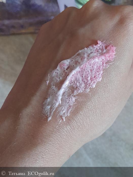 Это средство состоит из двух компонентов: скрабирующих частиц нежного розового цвета и крема. И очищение, и питание - все в одной баночке.