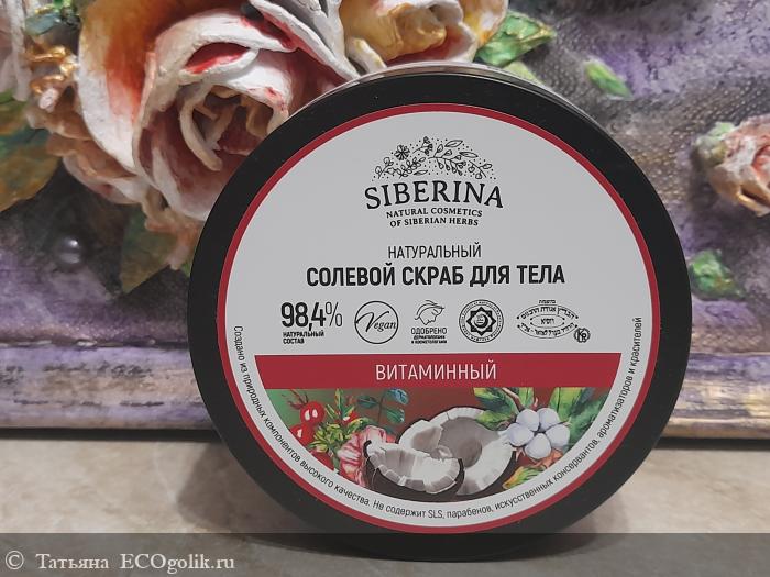 В этом отзыве поделюсь впечатлением об использовании такого скраба - Солевого скраба для тела "Витаминный" SIBERINA