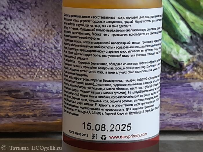 Татьяна: Сыворотка № 2 гиалуроновая подтягивающая, лифтинг, антивозрастная, от морщин Дары Кавказской Природы - эффективное омолаживающее средство!