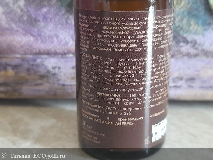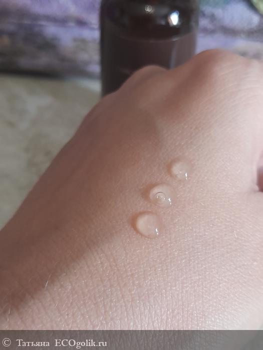 Сыворотка имеет гелевую текстуру, капельки не растекаются. Распределяю ее по коже тонким слоем и жду полного впитывания. Средство не оставляет липкости и жирности, никаких неприятных ощущений, не стягивает кожу.