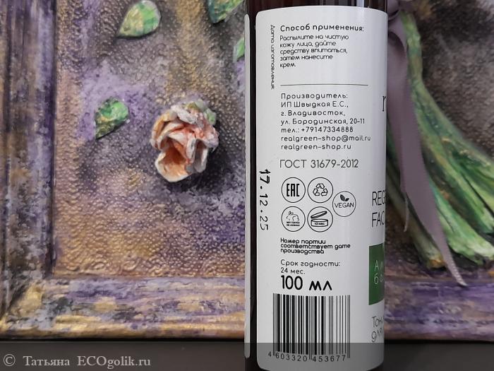 Татьяна: Тоник для лица "Амурский бархат" REAL GREEN - кожа увлажненная, гладкая, готова к следующему этапу ухода