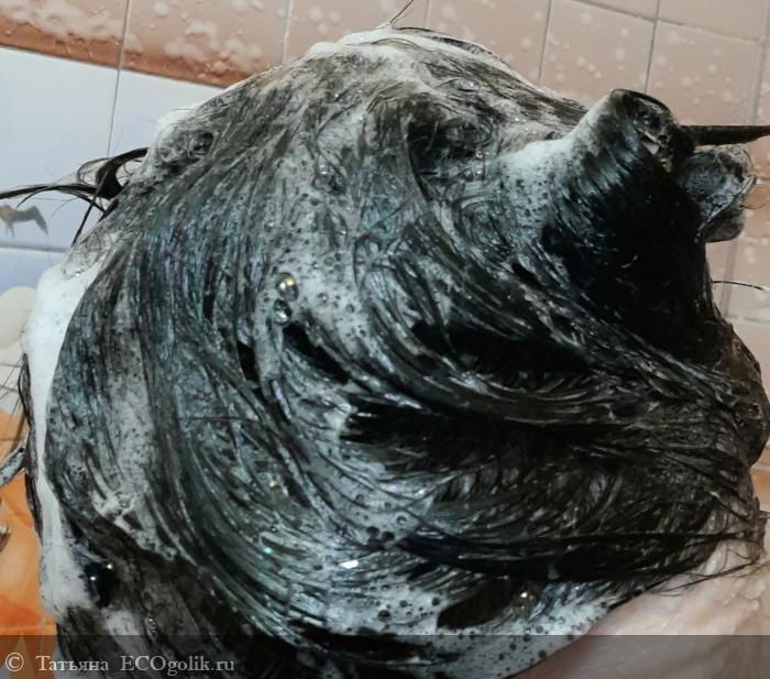 Всегда намыливаю голову два раза. Первый раз шампунь пенится не совсем хорошо, а второй раз пенообразование становится очень хорошим. Пенка густая, плотная, не стекает с волос. Оставляю пенку на волосах на пару минут, а затем смываю проточной водой комфортной температуры.