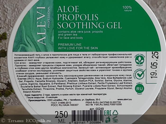 Успокаивающий Гель с Алоэ и Прополисом содержит сок алоэ вера, прополис и зеленый чай AleVi - классное средство для экстренного увлажнения!