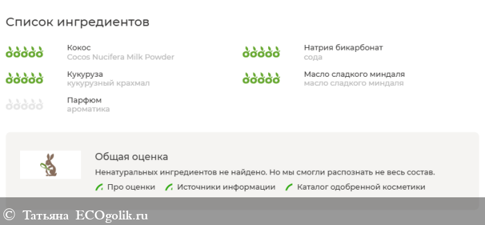 Cocos Nucifera Milk Powder, Sodium Bicarbonate, Corn Starch, Prunus Amugdalus Dulcis (Sweet Almond) Oil, Aroma.