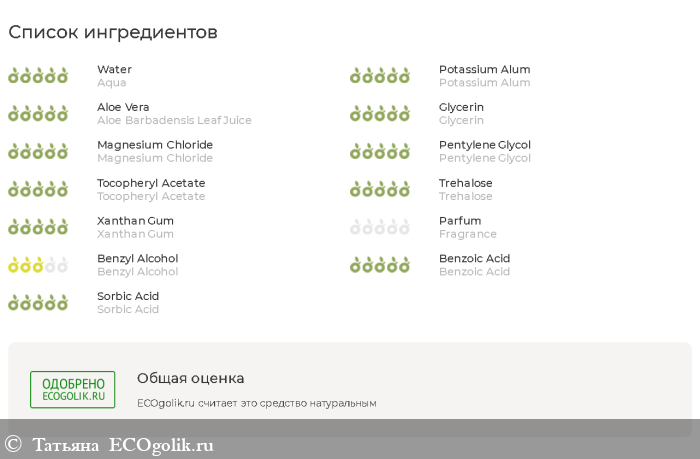 Состав полностью натуральный! Сайт Экоголик его одобряет!