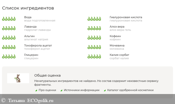 Сайт Экоголик дает вот такую оценку компонентам состава: