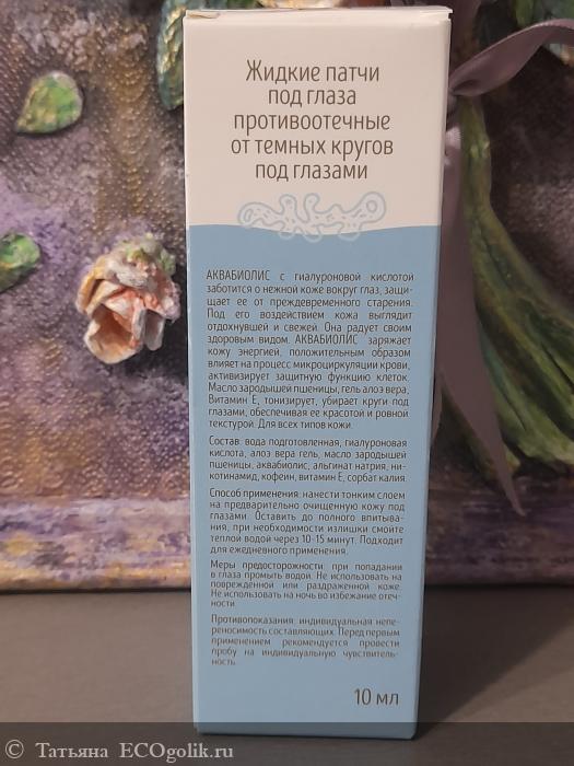 Татьяна: Жидкие патчи под глаза противоотечные от темных кругов под глазами с гиалуроновой кислотой и Аквабиолисом Сакские грязи - приятный охлаждающий эффект, отличный результат применения