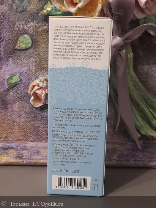 - Аквабиолис – высокоминерализированный полиминеральный раствор, изготовленный из лечебной грязи Сакского озера, содержит целый ряд физиологически активных ингредиентов, сбалансированный комплекс минеральных солей и микроэлементов, это и определяет его косметическую и терапевтическую ценность.
