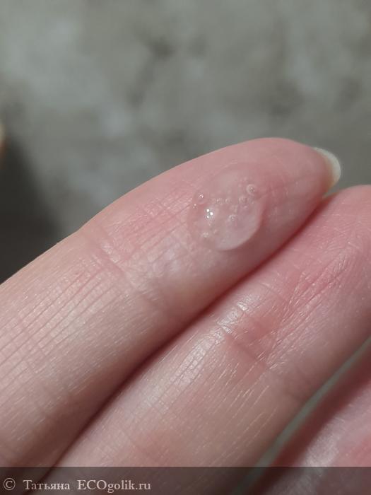 Средство средней густоты, имеет гелевую текстуру. Оно прозрачное, бесцветное. Имеет приятный, легкий аромат. По коже распределяется с легкостью и быстро впитывается.