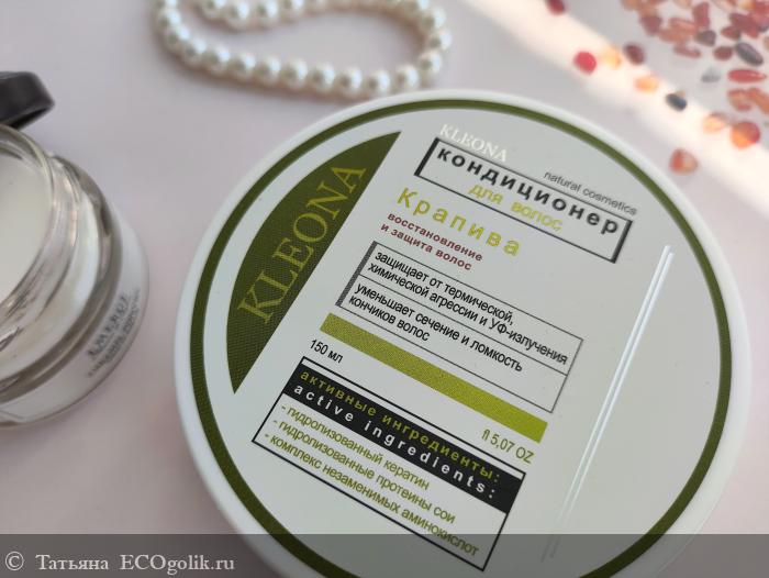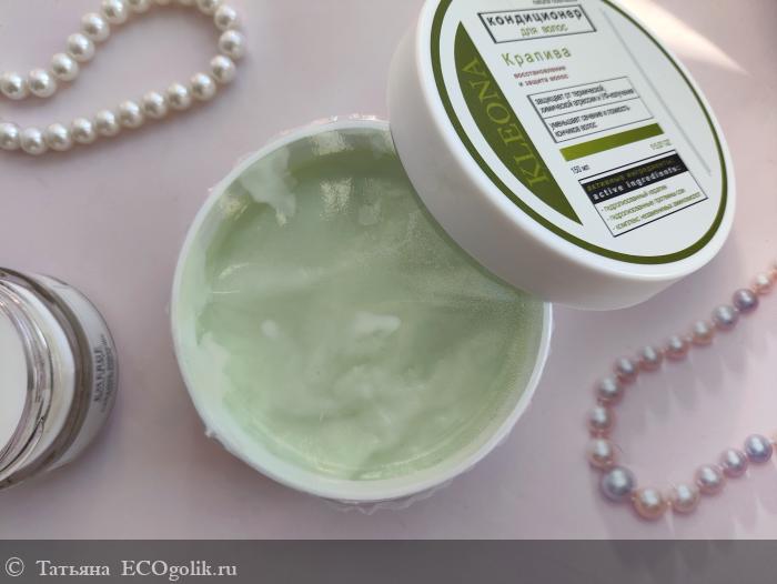 Кондиционер Клеона с крапивой идёт в светлой баночке с приятным дизайном.