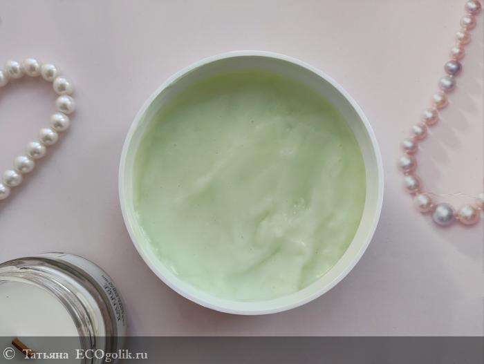 Он имеет светло-зелёный оттенок, по консистенции напоминает типичный кондиционер или бальзам.
