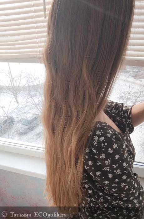 По всей длине до кончиков волосы ухоженные. Сильного блеска волос у меня нет, структура волос пористая и на такой сложно добиться блеска как с рекламы.