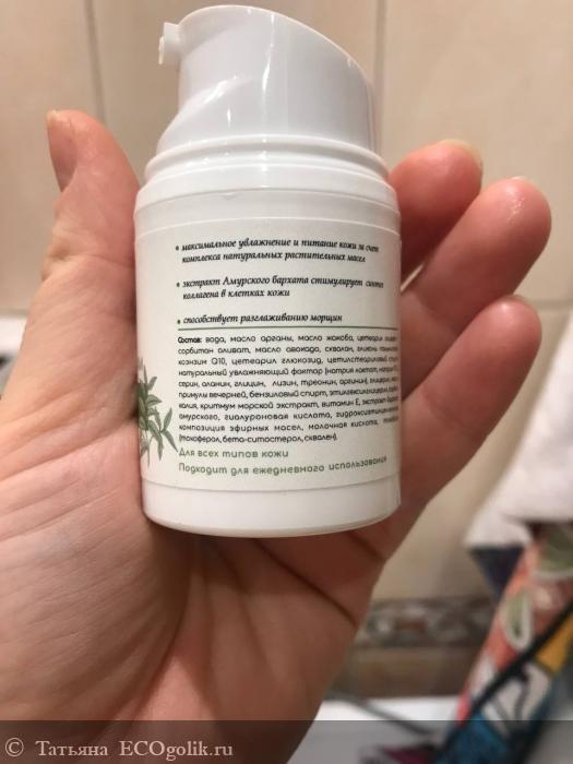 Крем хранится в тёмном пластиковом флаконе в объёме 100 мл. На этикетке имеется изображение амурского бархата. Дизайн влагоустойчивой наклейки минималистичный. Флакончик оснащён удобным помповым дозатором высокого качества. Он работает отлично. Выдаётся из отверстия дозатора крем легко, сам дозатор нажимается легко. Он не тугой, много усилий прикладывать не надо для того, чтобы выдавить необходимое...