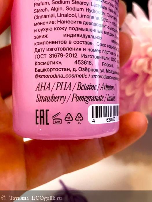 Татьяна: Дезодорант-сыворотка с AHА- и РHA- кислотами от Smorodina с утонченным ароматом клубники и шалфея