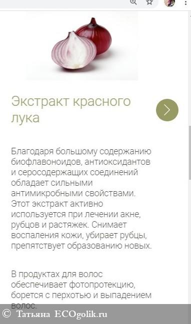 Экстракт красного лука - не отражается по ощущением на лице и глазах. Не щиплет. А вот места сухости мне пощипывает. Он как раз таки имеет очень полезные свойства при акне, в борьбе с бактериями. Для проблемной кожи он очень необходим.