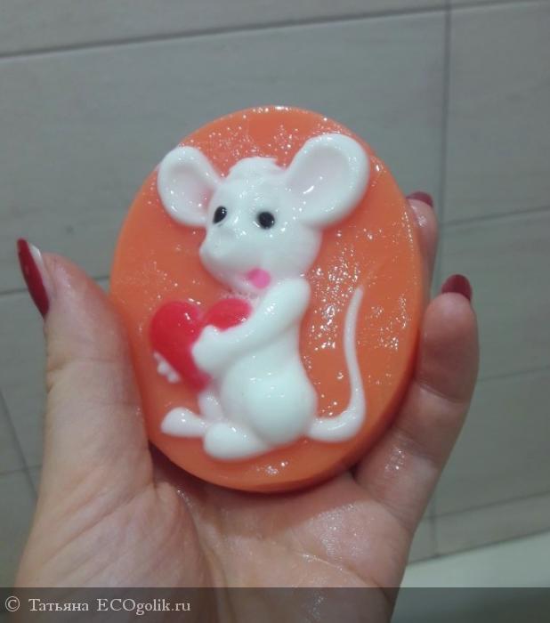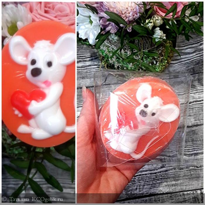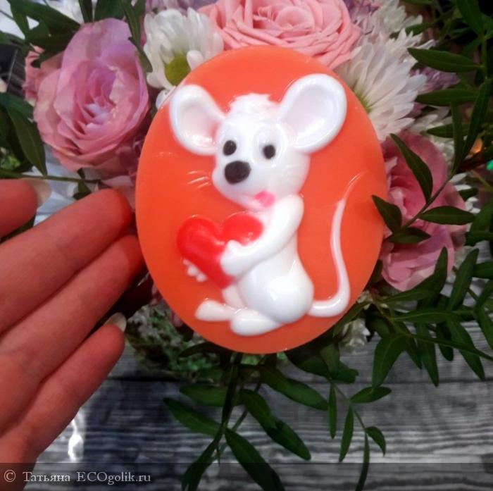 Дизайн мыла очень продуманный. Мышь объемная и на фото с боку видно, что она выпуклая. Аромат очень приятный - Новогодний! Тут же настроение праздника и радости)