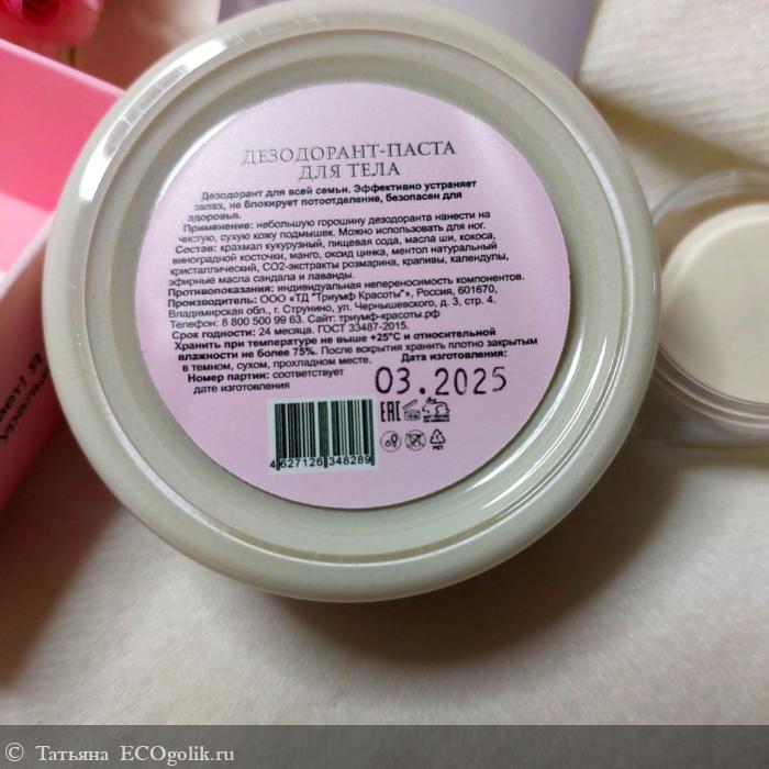 За последние годы косметика Триумфа Красоты самая покупаемая в моем доме, и благодаря пробникам от бренда я познакомилась с дезодорантом. Бренд кладет его к любому заказу, в особенности на маркетплейсах, сколько средств купишь, столько баночек пробников и получишь. Таким образом до покупки полноразмера я еще пол года пользовалась только пробниками.