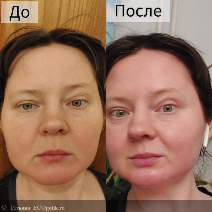 Благодаря богатому натуральному составу, успешной работе композиции подобранных ингредиентов, вполне выполняет свои обещания. Самое первое что удается увидеть это устранение сухости, легкость и комфорт. снятие раздражения и стянутости. Мне кажется что даже и немного эффект антиэйдж виден сразу, так как при приятных ощущениях и настроение не очень, а когда приятно и комфортно то и кожа сияет!