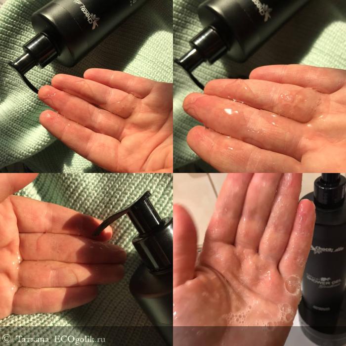Гель без добавления красителей,прозрачный и густой. Пенится пышно даже руками. Расход у него минимальный.