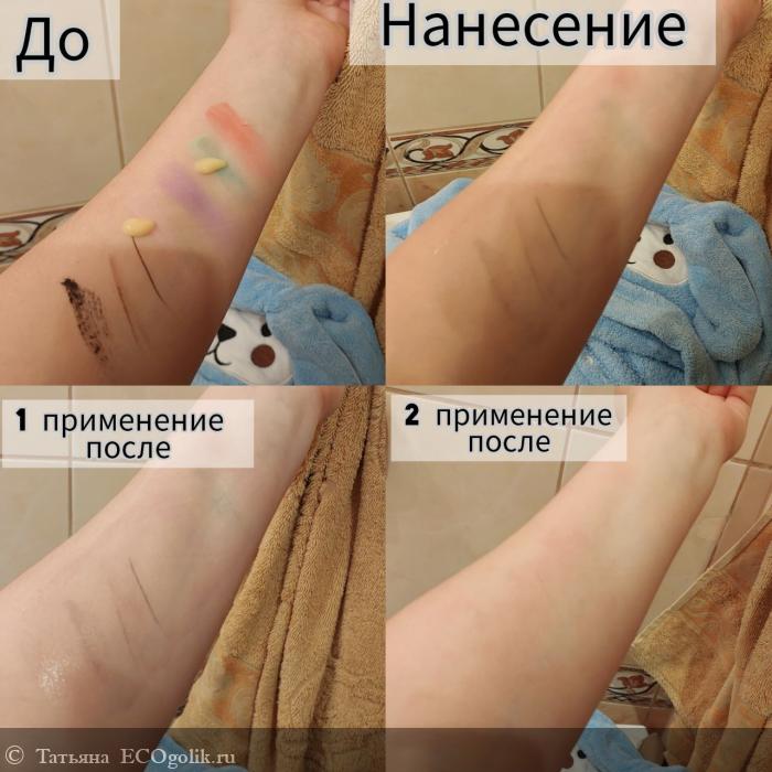 Косметику смывает отлично, но со второго раза. Натуральную без проблем и быстро, но у меня тушь и подводка не натур сегмента, но даже и с ними справляется отлично. Просто со второго раза.