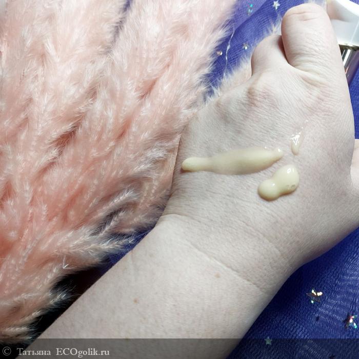 Молочко не на 100% белого цвета, я бы сказала молочного. Оно не растекается при нажатии, но в момент нанесения консистенция жидкая и податливая.