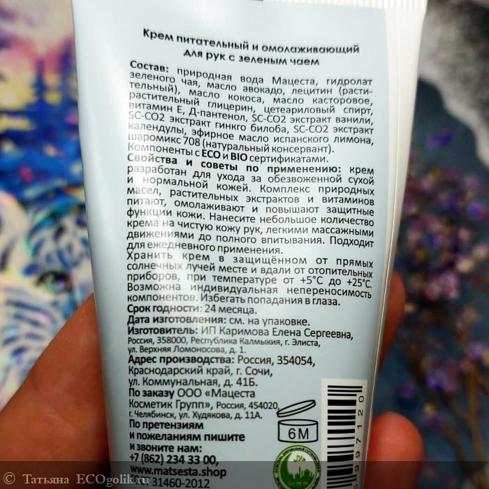 Татьяна: Питательный и омолаживающий крем для рук с зеленым чаем