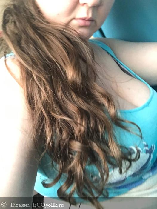Это загрязненная длина на третий день. По мне выглядит шикарно! Волосы не сохнут, локоны сохраняются, не путаются! Кожа головы конечно уже более жирная, но сама длина пока еще шикарна.