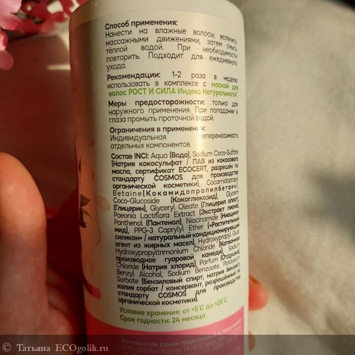 Татьяна: Шампунь для всех типов волос рост и сила с экстрактом пиона от Индекса Натуральности