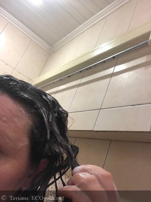 Пенится он с первого раза. Поэтому расход минимальный. Вымывается хорошо, воды тоже тратится минимум. Волосы во время мытья послушные.