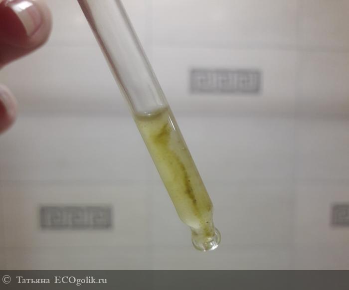 Прежде чем использовать ее нужно встряхнуть. Если этого не делать, то пипетку набираются зеленые экстракты. Я обычно не люблю мутную косметику, а тут у меня полное доверие, потому что вижу зеленое, натуральное, а не что-то не понятного цвета