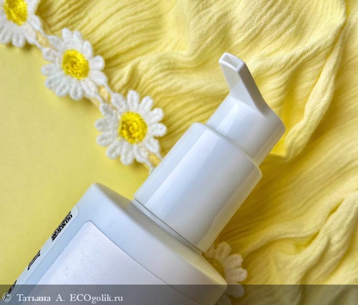 Первое, что сразу привлекает внимание, — это нежный природный дизайн флакона, в котором находится средство. Белые бутылочки бренда ассоциируются с чистотой и всегда отлично смотрятся на полочке в ванной комнате. Кроме того, флакон заряжает позитивом, ведь на нём — яркое сочное ромашковое лето, дарящее нам всю пользу и аромат луговых цветов и трав.🌼