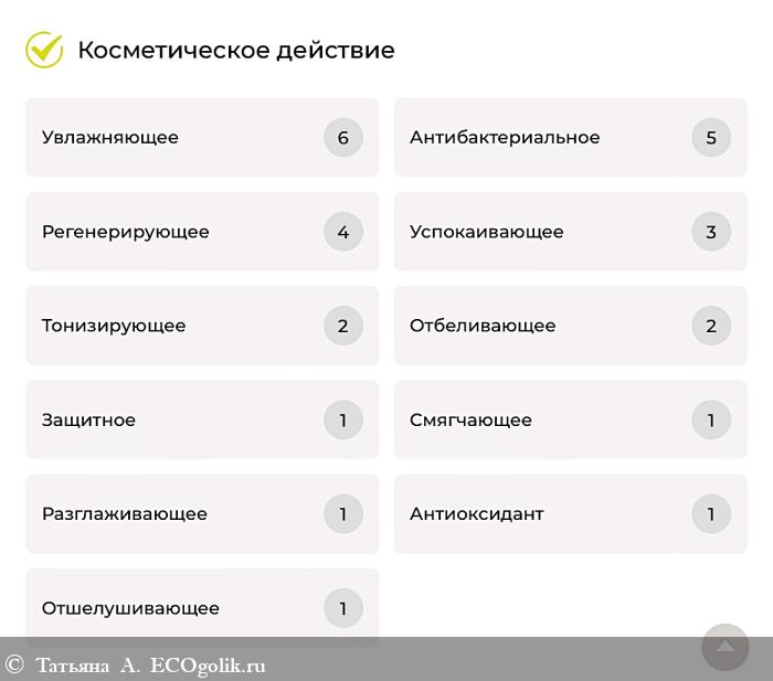 Расширенная проверка показала, насколько много содержится в средстве активных компонентов, отвечающих за увлажняющее, антибактериальное, регенерирующее и успокаивающее действие.