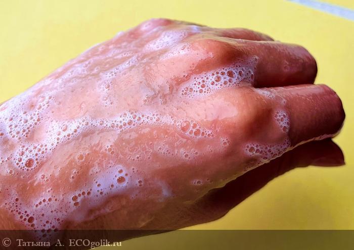 Даже небольшое количество средства легко взбивается в нежную кремовую пенку, прекрасно очищая и освежая интимную область тела.
