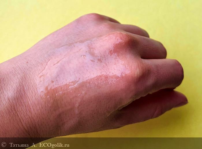 Количества, представленного на фотографии, вполне достаточно для эффективного однократного использования. Гель легко и мягко распределяется по коже.